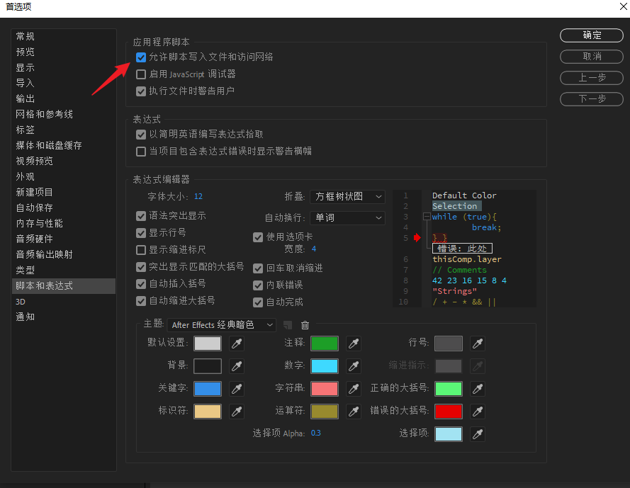 安装前要打开允许脚本写入文件和访问网络,然后插件便在窗口中的扩展里