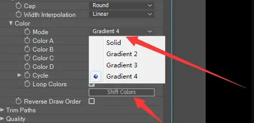 然后渐变的方式有四种,我们主要是点击shift colors 来改变看效果