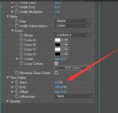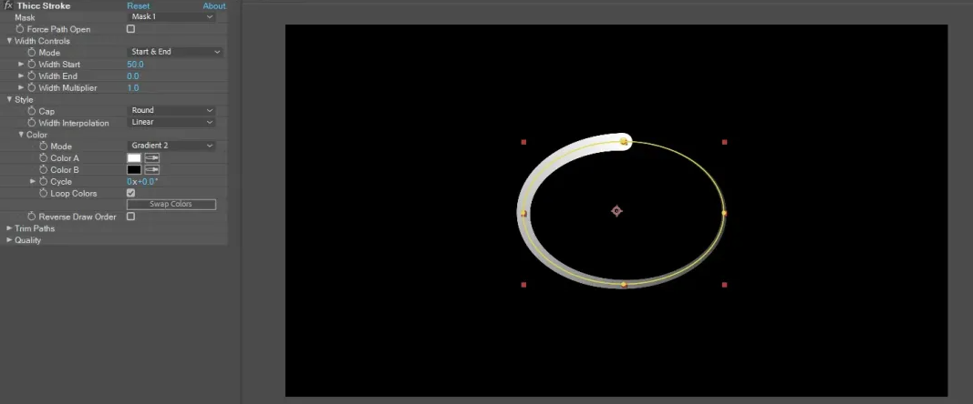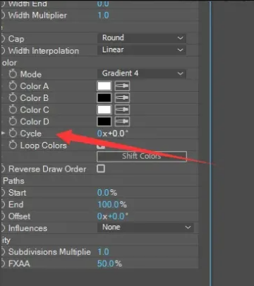 插件适用于蒙版图层和形状图层、使用顶点工具的无限宽度控制点,拥有许多种的头尾样式、拥有4种颜色渐变和可循环的颜色。