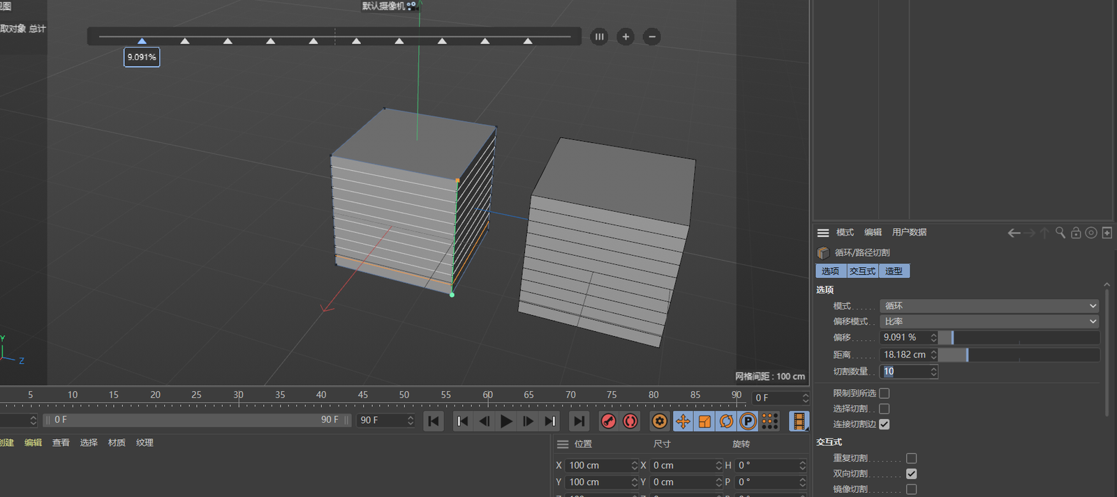 4. 因此,我们重新新建一个立方体,直接把它C掉,右键立方体,选择循环切割