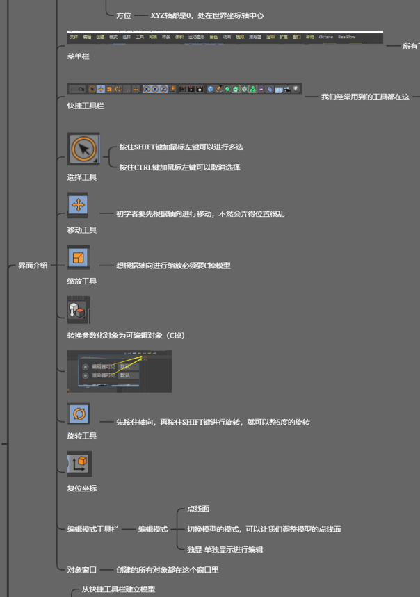第一节课老师耐心的为我们讲解了C4D的界面介绍和使用方法,讲解了参数化和可编辑对象的区分,例如想让参数化对象变成可编辑对象,点击模型对象按下键盘下的c键,第一次接触C4d也是觉得听有意思的,在学习的过程中也会发现C4D很多功能的使用原理和ae很相似,第一节课也了解了C4D里的工具叫什么名字,有何作用