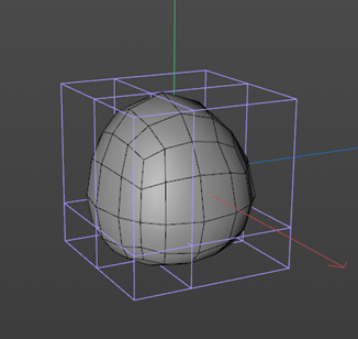 2. 添加FFD,切换到正视图,框选中间一行点,按住shift向下移动50cm,接着切换右视图,框选中间一列点,向左移动30cm。至此头骨大体形状完成。