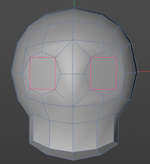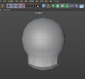 3. 接着制作牙齿,我们挑选牙齿四个面,启用坐标系统,一个一个向下拉出40cm;接着在眼睛所处的面用线性切割切出米字;然后给两个中心点倒角偏移30cm;接着切换面式,选中两个面,向内挤压 偏移40cm,然后再缩放至60%。接着添加细分曲面,卡通头骨的模型就完成了。