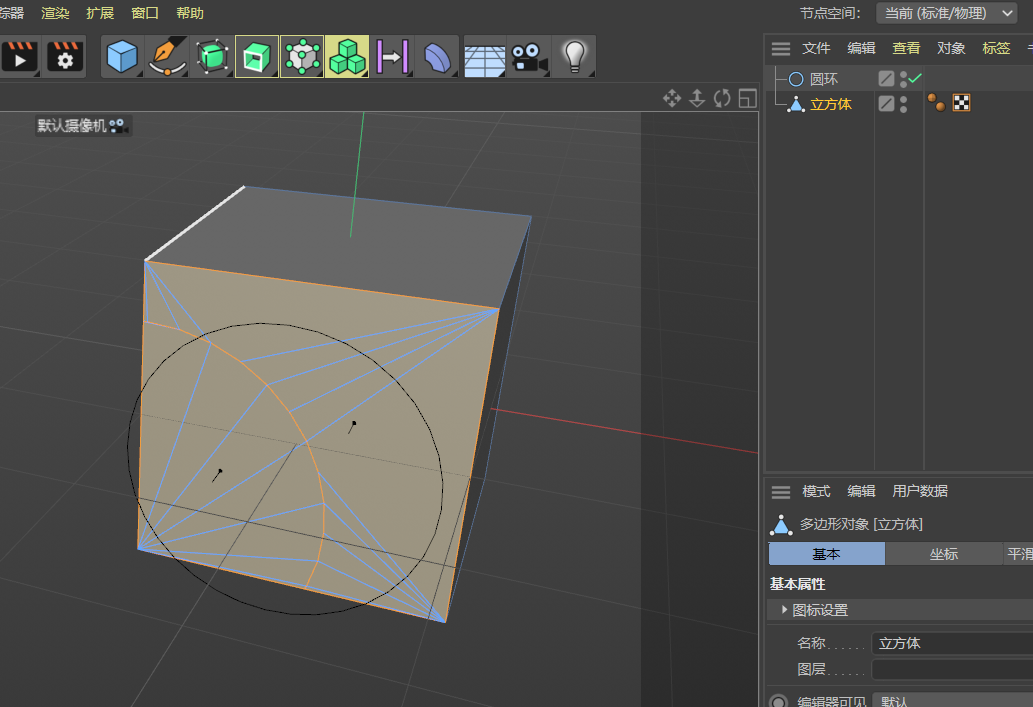 7. 用样条线 线性切割立方体:新建一个圆环,选择面模式,按住CTRL作线性切割