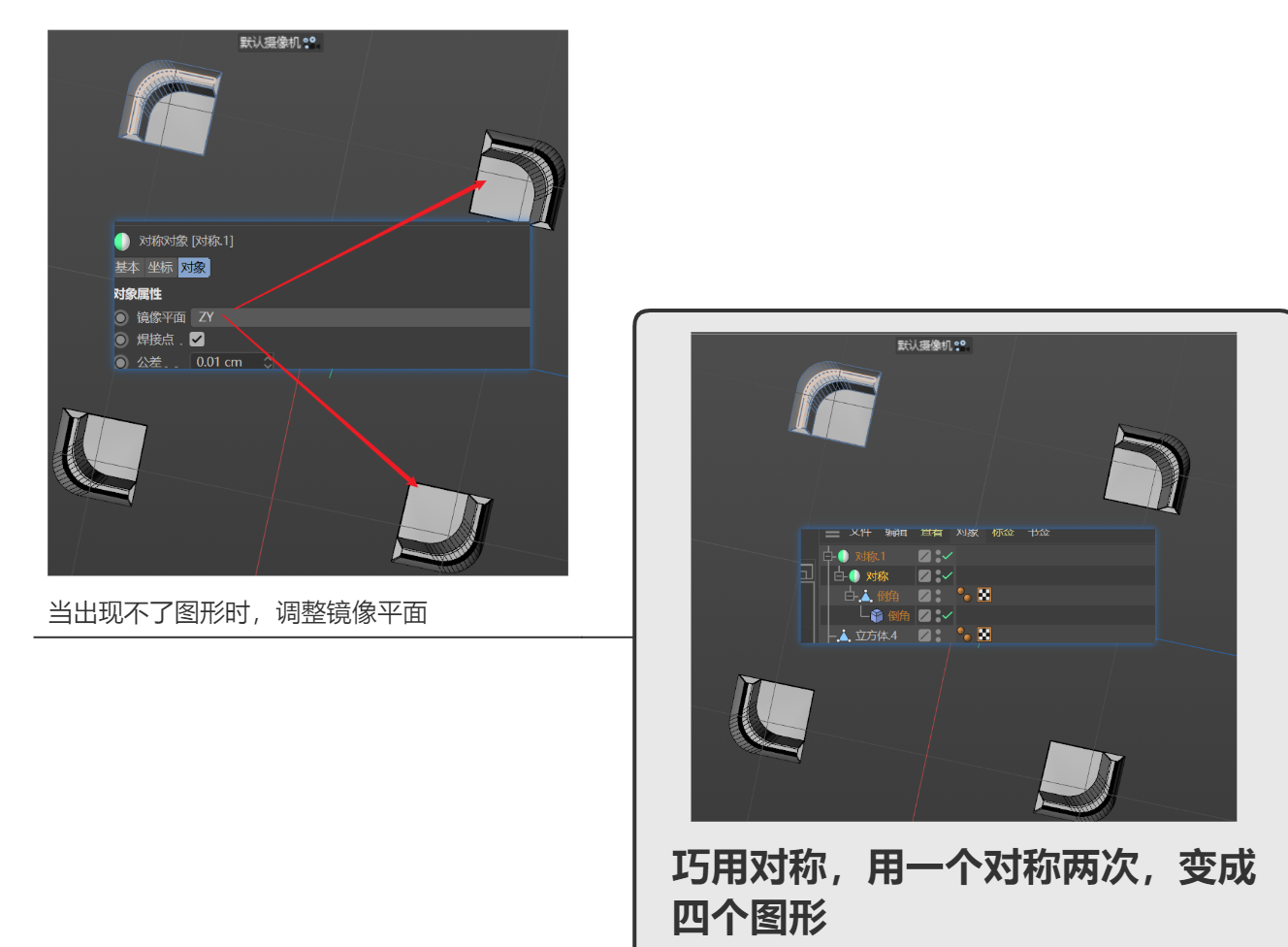 ④三维小技巧:巧妙利用对称,可以更快速的建立模型:将对称设置为模型的父级(可以一层套一层)