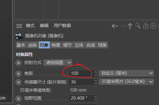 tips:一般在看静物时,我们会选择摄像机焦距为:100