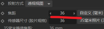 再在选择刚刚放置的摄像机。焦距的应用,焦距越大就会越大越清楚(看着变形会比较小),焦距越小图片就越宽广(看着会有点变形),