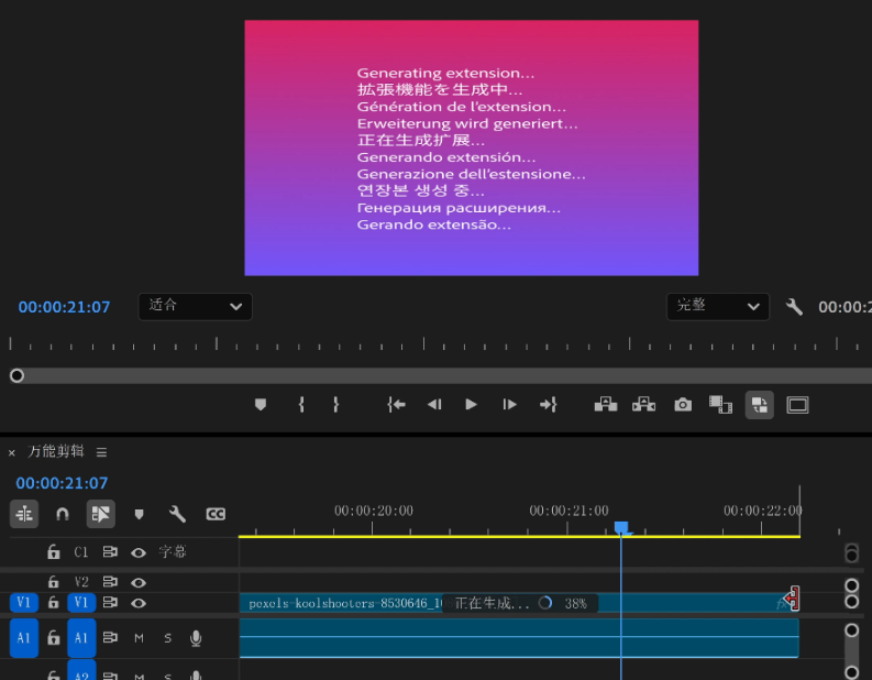 PR 使用生成式 AI 填充可以无缝的在视频的开头或结尾,智能的生成视频画面,延长视频画面的持续时间