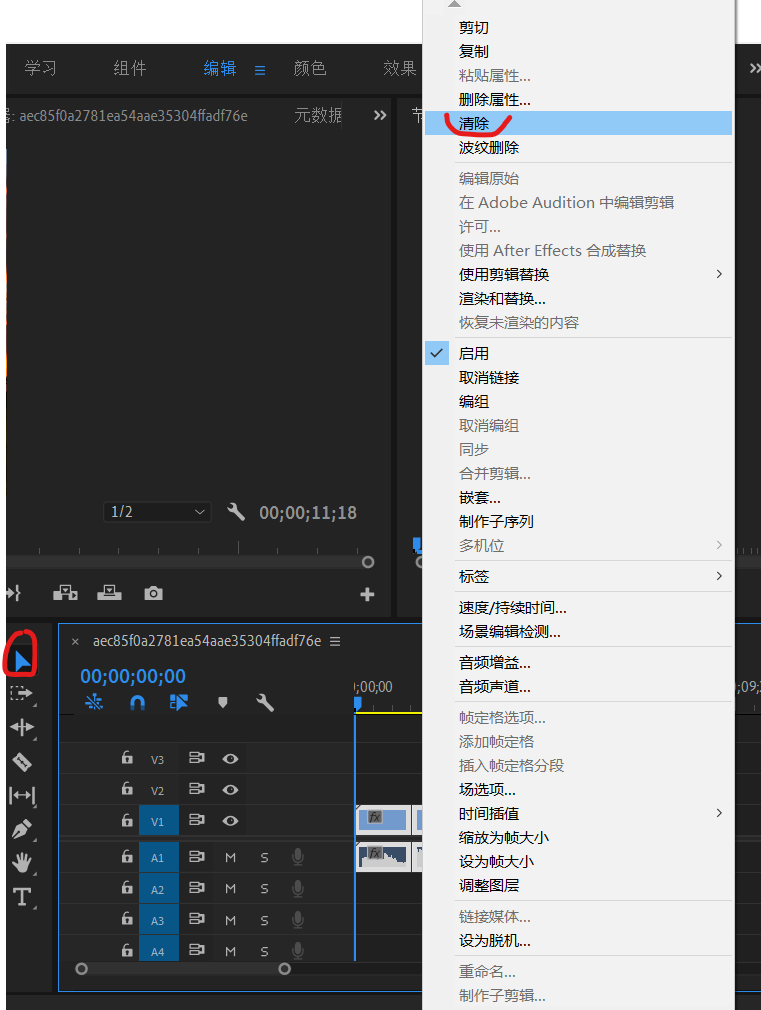 通过今天PR(第二篇)PR学习/技巧分享:视频删减:当我们想要对一段视频进行删减时,我们可以选择任务栏中的「剃刀工具」快捷键C键,对准想要分割(Ctrl+k和C快捷键一样)的时间线单击一下,一段素材就被分割为两段。再选择任务栏中的 「选择工具」快捷键V键,选中想要删除的那段素材,点击右键,选择“清除”,即可删除某段视频。记笔记,养成良好的自我学习习惯😊