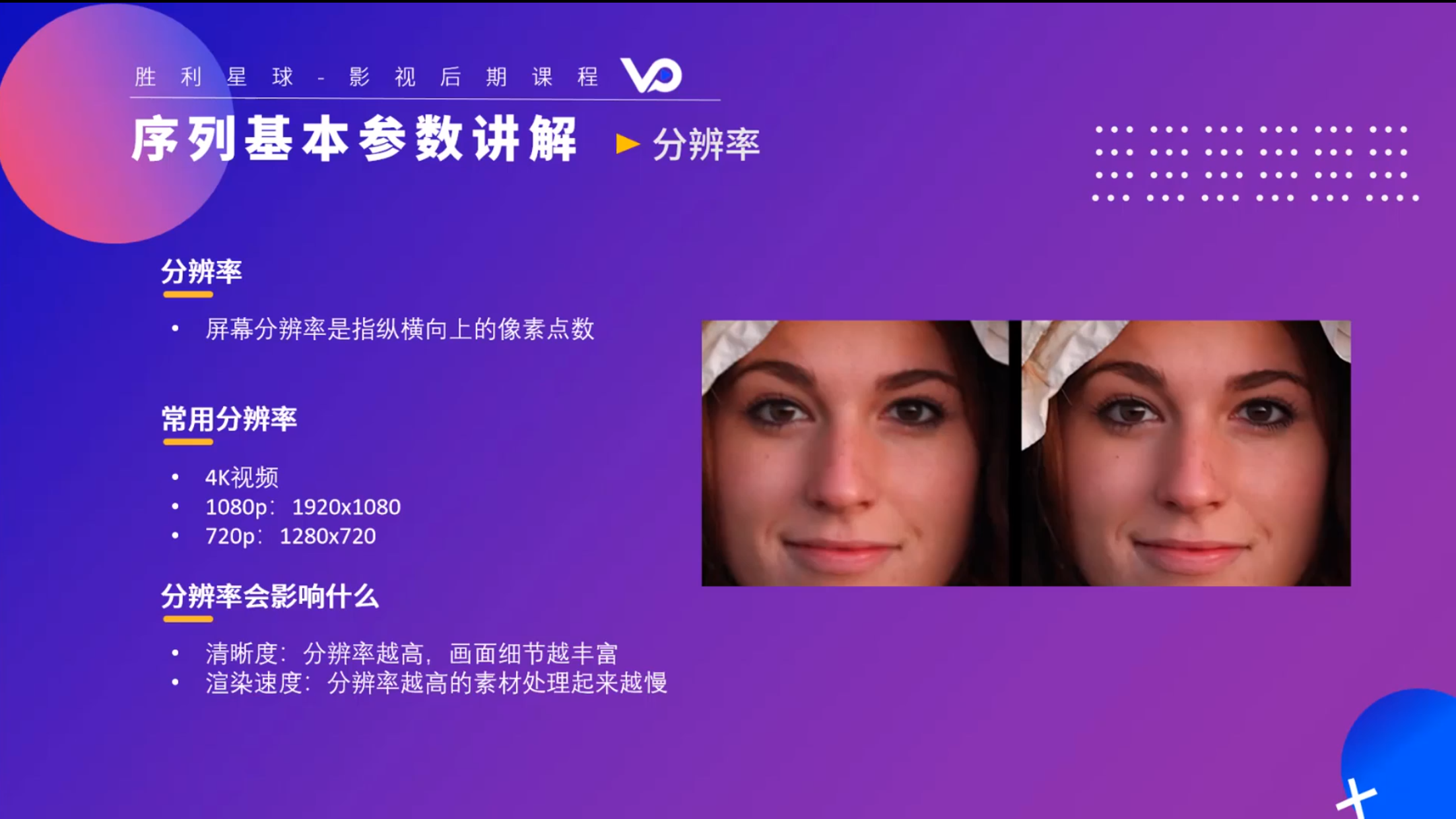 1、分辨率:是指纵横向上的像素点个数,1080p即1920x1080横屏,4K即3840x2160,800万像素,720p即1280x720横屏(p指无场,i指有场)