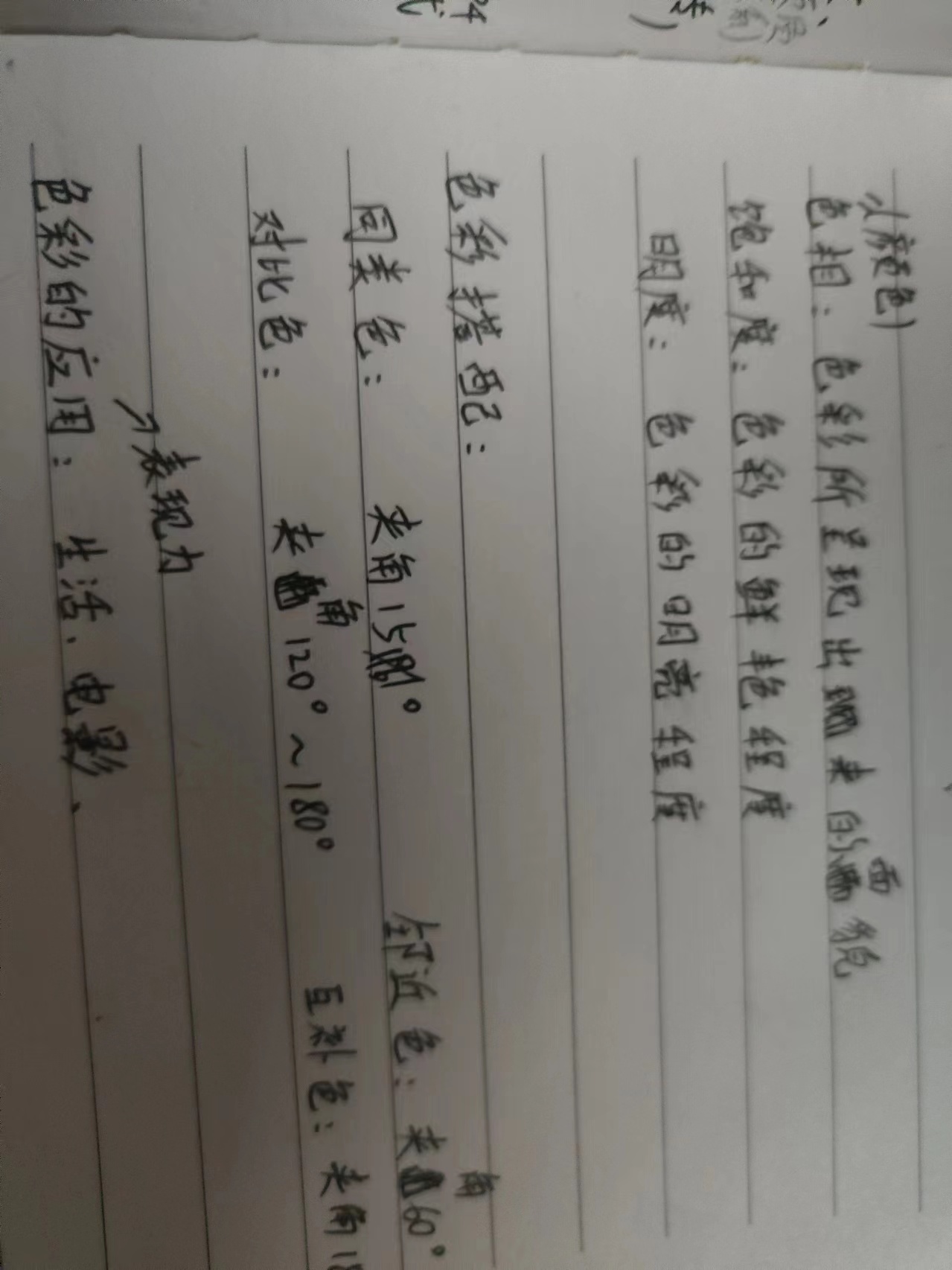 色彩的三个属性:(1)色相:就是颜色(2)饱和度:鲜艳程度(3)明度:明亮程度