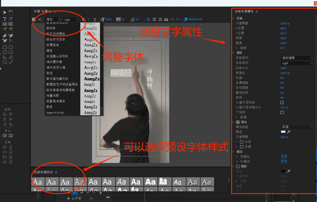 文字工具使用较为方便,但不适用于制作有大量字幕的作品,操作过于繁琐。