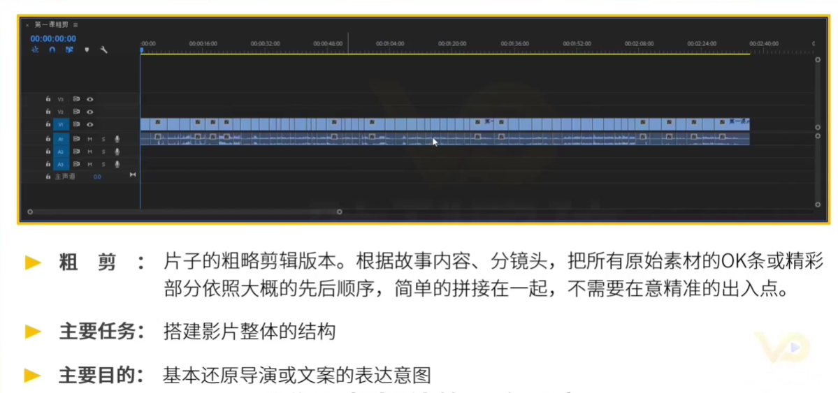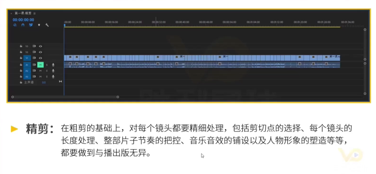 剪辑流程大致分为三部分,粗剪、精剪和包装。