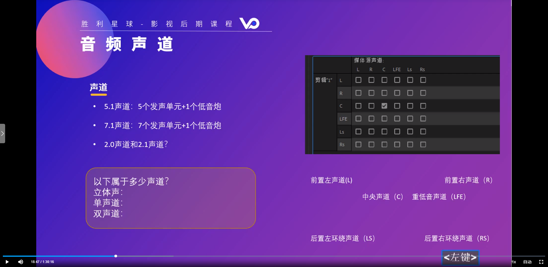 声道分2声道,5声道和7声道,可以在剪辑--音频选项--拆分为单声道进行拆分,得到自己想要的声音或者去掉杂音