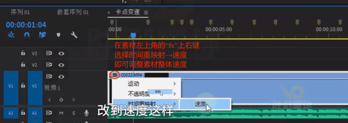 使用时间重映射时有一个很重要的点,那就是调整完速度之后要记得嵌套,否则其他效果无法在这个素材上使用。