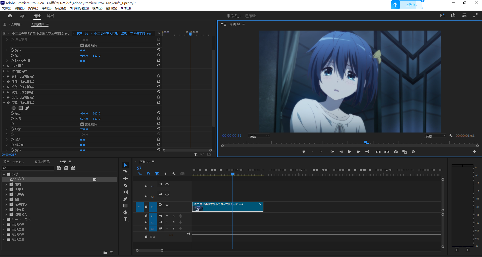 今天分享一个制作PR预设的方法,在网上看到的一些动漫拉镜的边缘是有镜像的效果,现在就教大家如何制作以及导出预设方便使用。