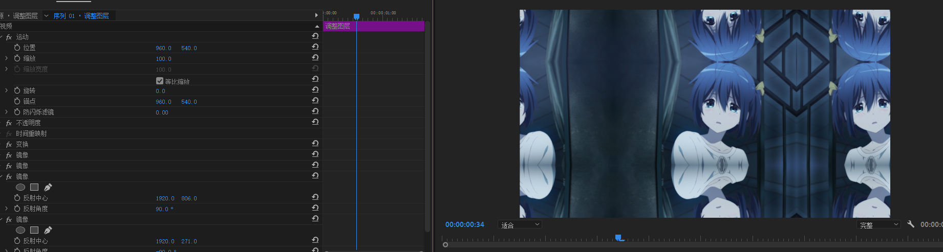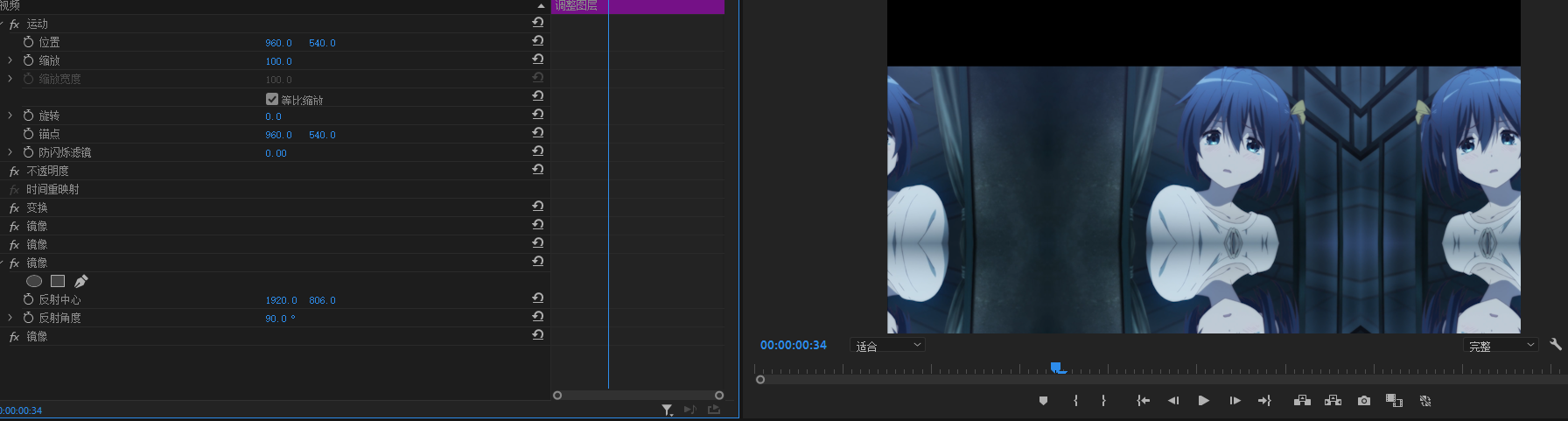 打开第一个镜像,拖动反射中心1920的数值,就会发现画面会有镜像的效果