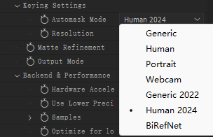 插件还支持自动识别视频中的背景与主体,智能完成抠像操作。当然,如果视频使用了绿幕或其他纯色背景,也可以通过颜色键控模式进行处理。