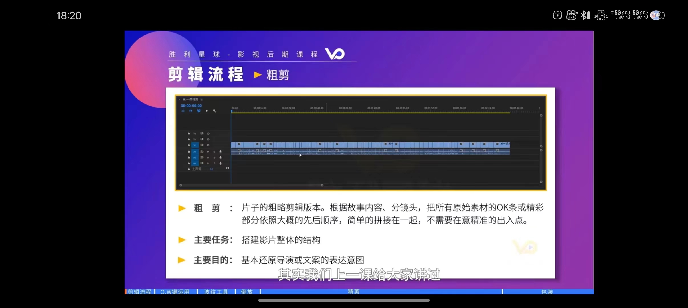 今天给大家讲一下剪辑的工作流程,其中比较重要的是粗剪、精剪和包装。